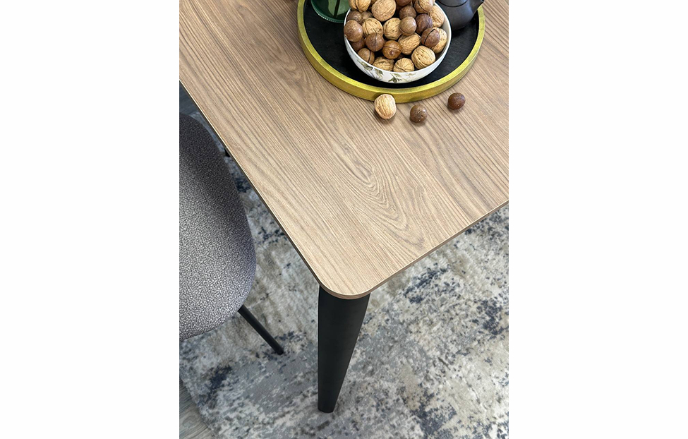 В столе используются уникальные дизайнерские опоры из металла. Тонкие, очень прочные, они дают достаточную ширину для того, чтобы поставить 2 больших стула по широкой стороне стола, и обеспечивают столу идеальную устойчивость
